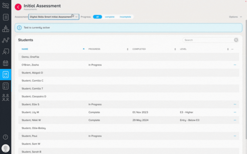You will need to filter by 'Assessment' to view the results of either the English, Maths or Digital Skills IA.